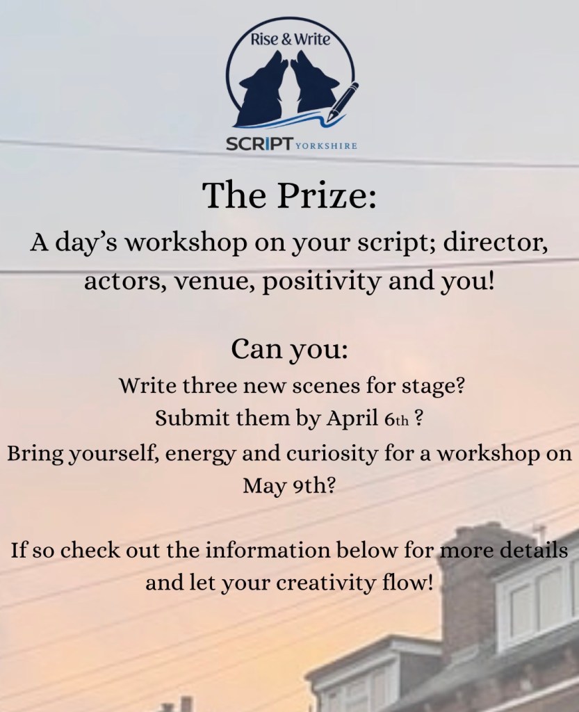 - STAGE Rise and Write – an opportunity to win R&D time for your WIP with an experienced director and actors. The competition is being run by the Rise & Howl Collective and is exclusive to Script Yorkshire members (who can find details in SYChat). Deadline 5th April 2026.